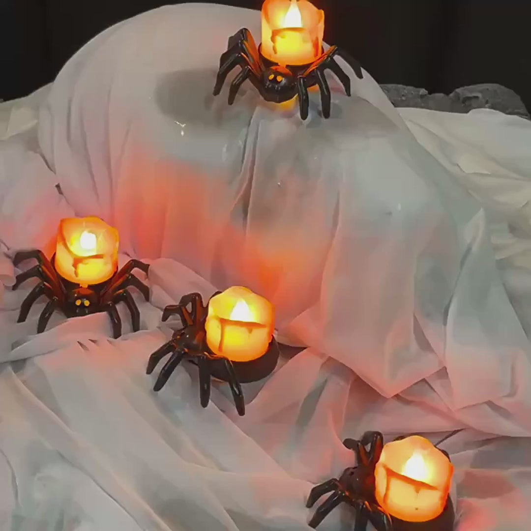 Bring a spooky touch to your Halloween with this classic pumpkin lantern, featuring detailed spiders for extra eerie charm. The built-in candle light creates a warm, haunting glow that’s perfect for parties, haunted houses, or home décor. Lightweight, durable, and reusable, it can be easily set up indoors or outdoors. Add a festive, creepy atmosphere to any space with this simple yet striking decoration.